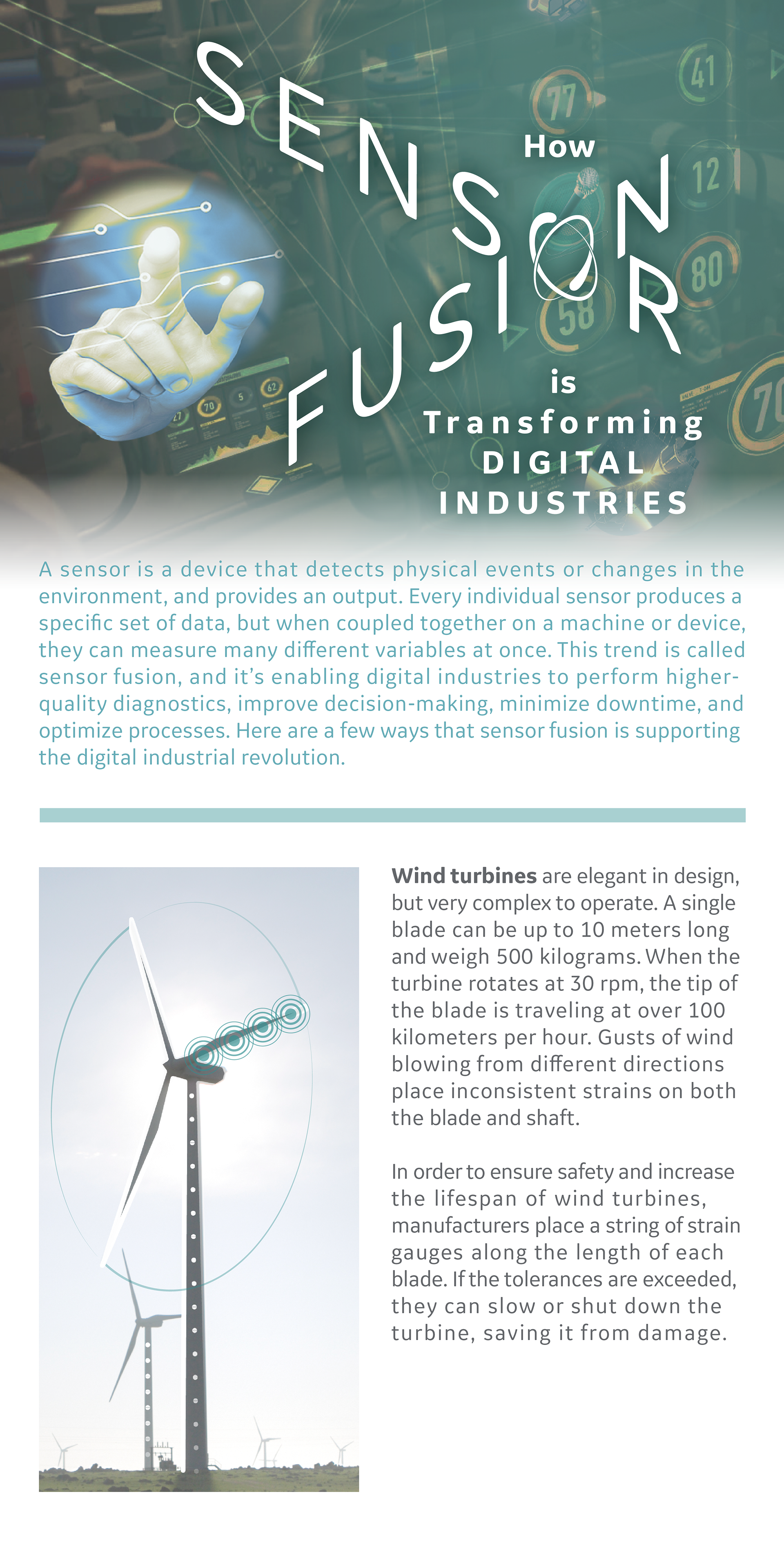 This was a two part article series on the future importance of sensors for GE Reports. Full design including layout, typesetting, infographics, image compositing & icon creation.